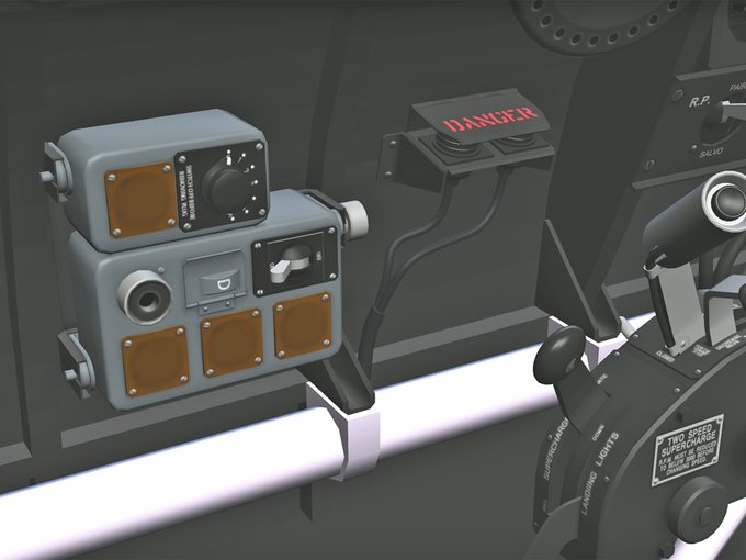キャノピー開閉ハンドルの下にはIFF(敵味方識別装置)の破壊(自爆)ボタンがあります。敵地に不時着した際にはフラップ下のボタン2個を同時に押す事でIFF送信機内の爆薬(テルミットだから焼夷剤か)の時限式点火装置が作動します。
