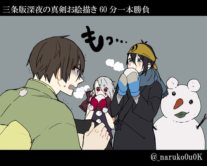 @_naruko0u0K お題:手紙(@sanjou_60min)#三条版深夜の真剣お絵描き60分一本勝負 石文を交換する今剣と岩融