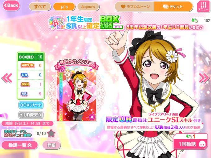 8周年記念のBOX勧誘、今回は推しの花陽が出るのでこちらも引くことに!