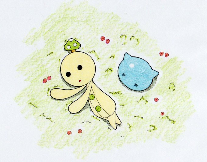 水色「こんな所で寝たら風邪ひくよ?」 キのコ『ユメミガ ワルク テ アマリ ネレナカッタカラ・・・』 水色「そっか、風邪ひかない程度に眠ってね。。。」 #らくがき #アナログ絵