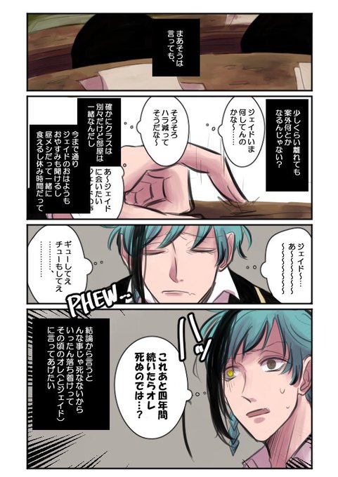 ジェイフロ氏、珊瑚の海で四六時中ベタベタだったのにいざNRCに入学してクラスが別という事実が発覚したらむこう1年間はこうなってそう ※ジェイフロ