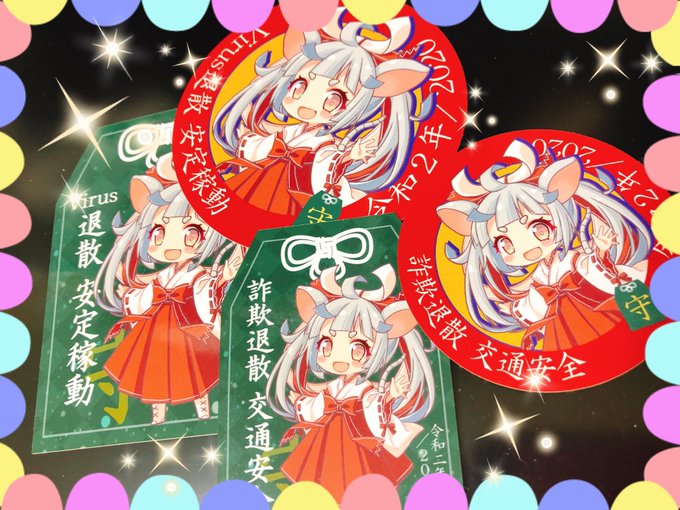 書かせていただいた、お守りシールいただきました(°▽°)💕 うーん、めんこい! 来年の干支の、ねずみ娘さんです! 頒布場所は添付画像を見てね♪