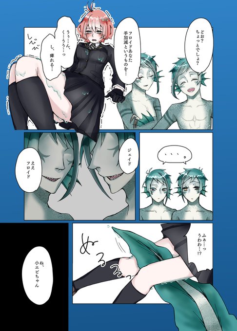 小エビちゃんが勘違いする🦈🐬🦐仲良しまんが 最後のは不審者ガードです ※リーチ兄弟の幼少期は妄想(ウツボ寄り) #twstファンアート