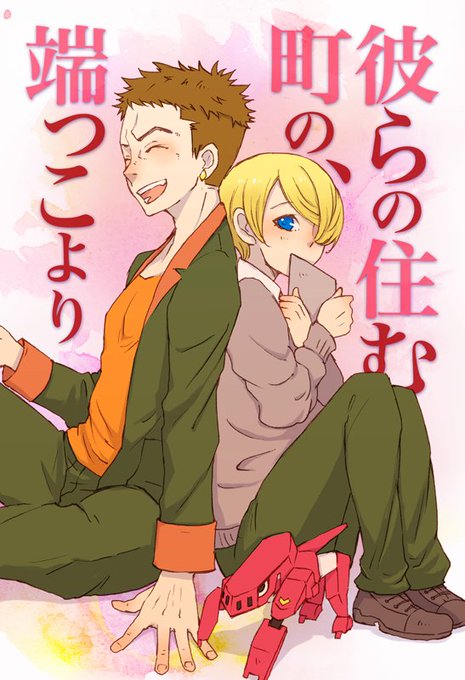 シノヤマ本表紙と内容チラ見せ!『彼らの住む町の、端っこより』現パロ学園物!ヤマギの大事なフラちゃんが脱走しちゃってヤマギの憧れのシノに拾われ流星号と名付けられちゃうところからはじまる全年齢向き16pです!嘘です。出さないです。診断メーカーの結果が可愛かったので描いてみただけ!