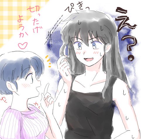 「いいよ、まだ伸びてねえし、」「いーじゃない!なんか邪魔そうだし!……なんで逃げるのよ」がしっ 「ひ、必要ねぇって…ほら、また改めて頼むから、、、な???」(オレの髪がなくなっちまう!!!) #妄想