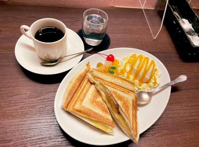 りんごとカスタードのホットサンドも美味✨