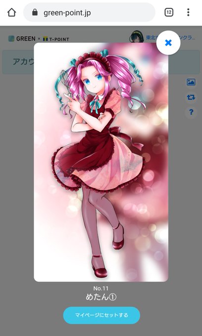 #GREENTポイント 早速登録してみたら、めたんちゃんのカードもらった。