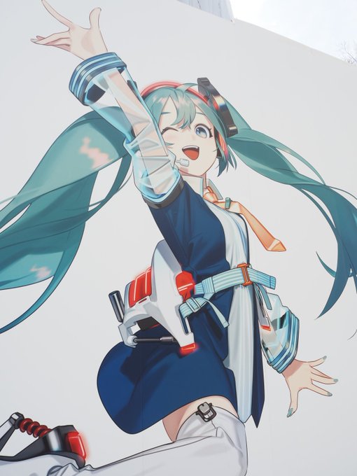 #ミクの壁 普通の街中の交差点に突然現れる、大きなミクさんです。