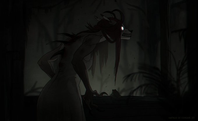 I'm Natalie and I draw macabre, fierce, anthro-human-creatures things. Also cursed stuff, you can find an example below 😆