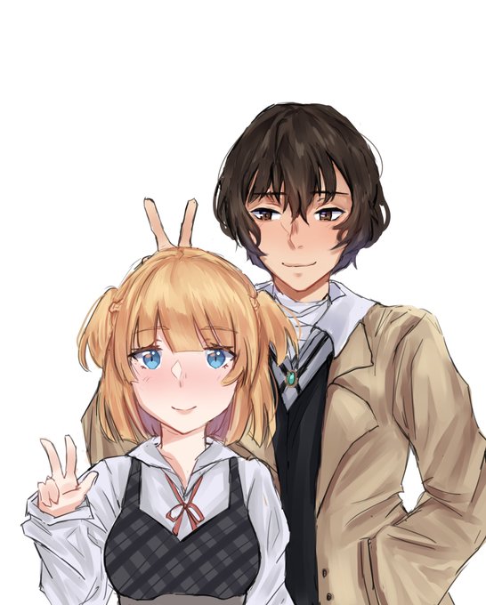 full color sketch for dA: @/IdantityCrisis's OC and Dazai :3