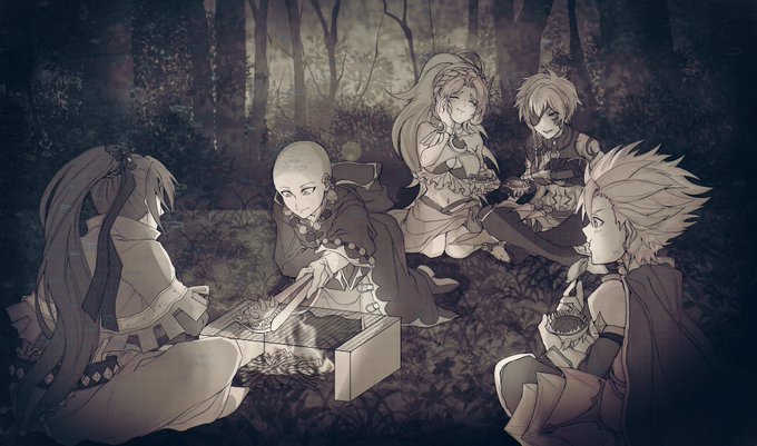 なんかメギド達がモンモンいないところで野営でサバイバル飯してるところ見たいなと。お手軽に深海牡蠣焼いて食べてもらった。