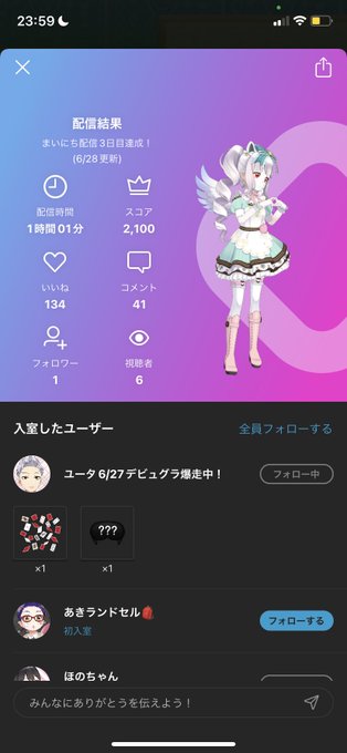 配信ありがと!いろいろさんきゅ☺️