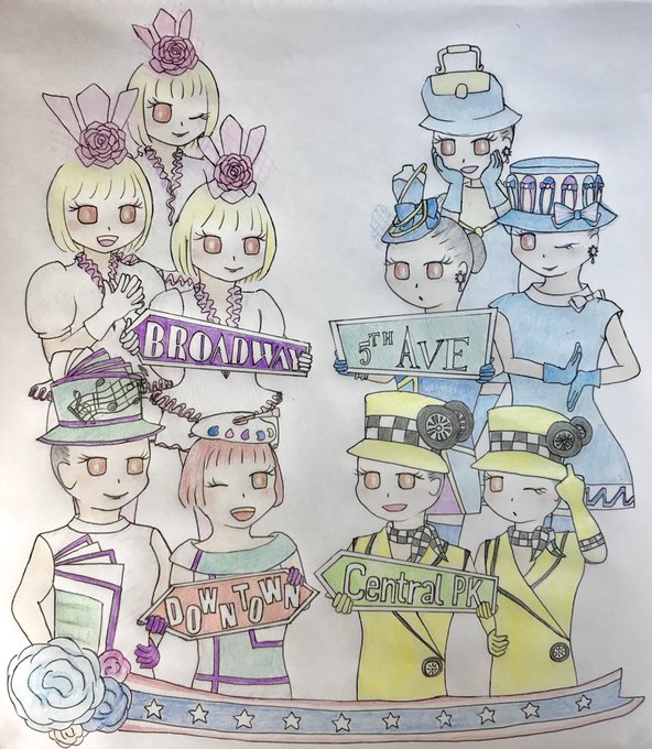 今までの集合絵は人描くの苦手(ミキフレもだけど)で、もっと人数少なかったり雰囲気で描いたり足しか描かなかったりだったけど、今回は頑張るのだ💪💪💪💪💪