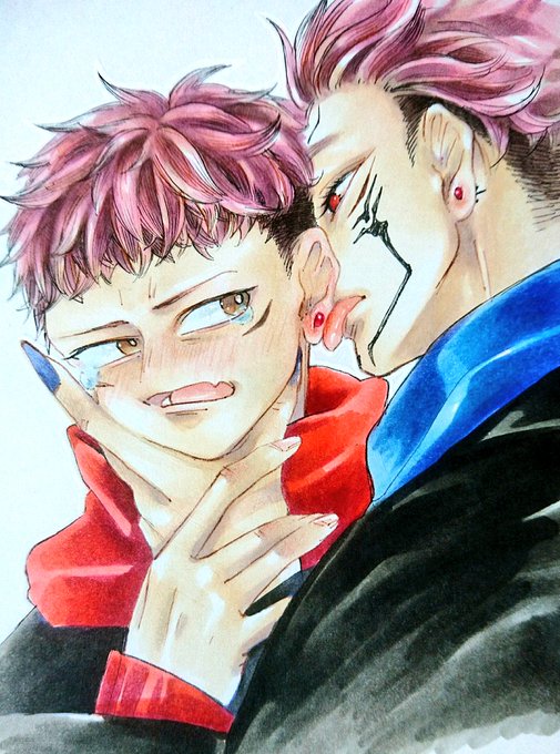 ※ピアス これゆじ君ちょっと変になっちゃったけど スクナはいい感じに描けたし 赤み強めに加工したら好きな感じなった😊💕💕💕