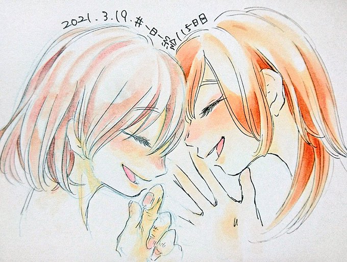 115日目 ないしょ話 二枚目が実際の色味に近いです👌 #一日一絵 #コピック #水彩色鉛筆