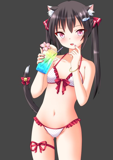 完成。 「猫耳とツインテールとビキニと夕日」