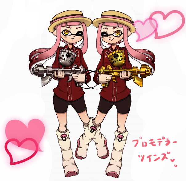 イカガールをちゃんと描いたことがなかったのでチャレンジ!(ついでにいずれ出てくる前々から考えていた双子マイイカとしても兼ねようかなと・・)プロモデラーガールちゃん♡