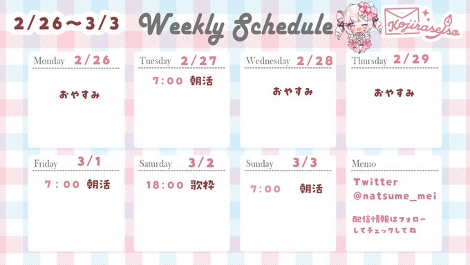 📢2/26~3/3のスケジュール💌