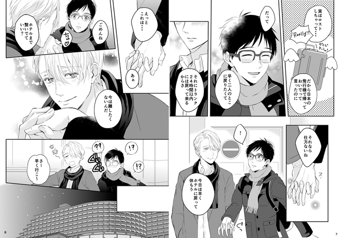 一応ツイッターにも新刊サンプル上げておきます。ヴィク勇で、9話の福岡空港での再会後のお話しです。だらだらしゃべったりイチャイチャしたり。付き合ってもいないのにえっちしたりする二人です。謎