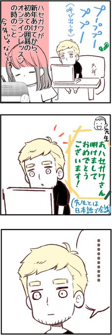 レッスン後、彼は「アケマシテ」をひたすら練習しておりました(言いにくい)