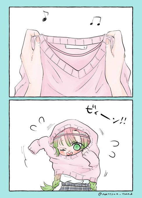 🐍さんの好物のとろ¡ろ昆¡布の柄のニットを今回は2人に着て貰いました😉💕 https://t.co/POo9mPnEsA