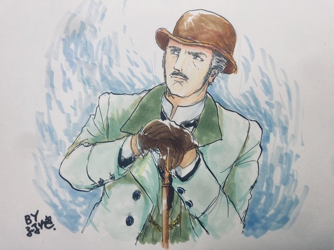 ホームズのジェレミー・ブレットは難しいので、まずワトソン(デビッド・バーク)を描いてみました。 来週も楽しみです。 #シャーロックホームズの冒険