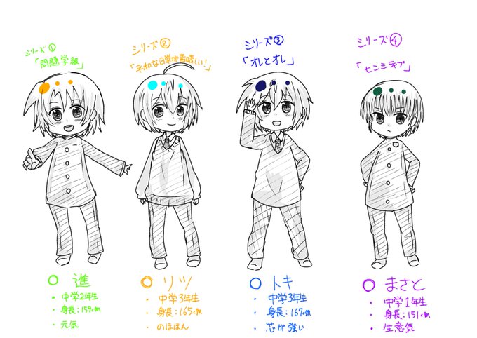 創作では学園物中心の中学生を描いていて、現在は四コマ漫画をマイペースに進めてます。