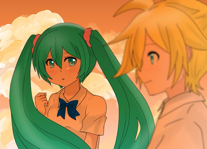 「オレンジ色の空の下で、せめてこの時間だけはあなたと二人きりでいたい」 片想いレンミク。 #レンミク