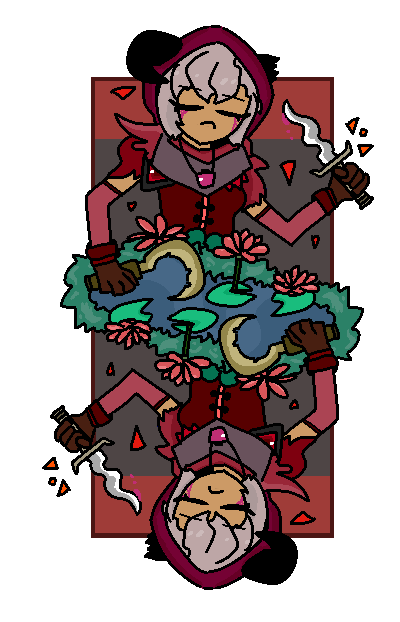 소녀는 전쟁고아출신으로 동생과 함께 지나가는 상인을 털어먹으며 다녔습니다. 그러다 한번은 이교도들의 마차를 건드리게 되었고 신의 자비로운 축복을 받게 되었다고하네요. 동생은 어디있냐고요? 손에 들고 있잖아요. 암살자는 어둠속에서 적을노리는 추가피해에 특화된 딜러입니다.