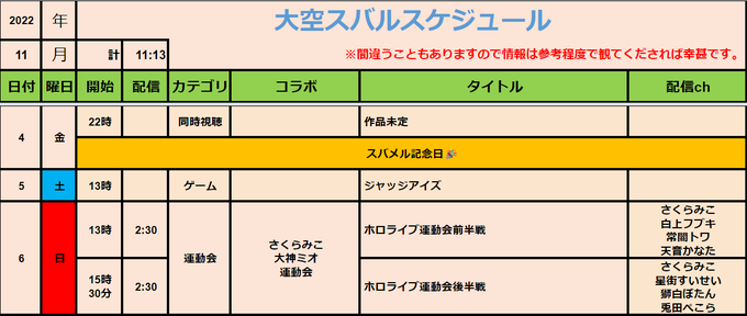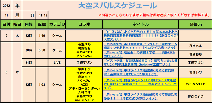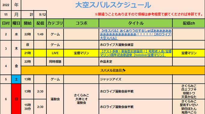 #大空スバル スケジュール