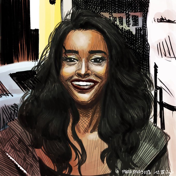 #photostudy #portraitart #characterart #digitalillustration #ipadpro #procreate #darkskin #blackskin #blackgirl #curly #curlyhair #smile #nautilebleu