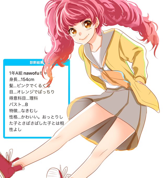流行りの女子高生化診断をやらずにはいられなかった・・くるくる髪の毛初めて描いたーそして泣き虫設定忘却してた