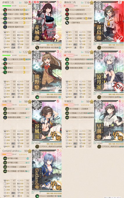 E4-1甲突破! 道中(潜水)&決戦支援有、基地航空はボス集中 何度か大破撤退もあったけどちまちま削り、ラスダンは3回目で北上様(3rd)のカットインが刺さって〆! レアドロは無し 今回新規ドロップ艦に全くお目にかかれないんだが… #ナヲハタ提督