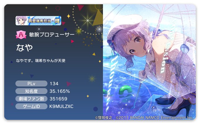 なやです。 色々なゲームやってます。 デレもミリも絶賛同僚募集中ですのでもしよかったらリプなどで教えてくださると喜びます。 よろしくお願いします。