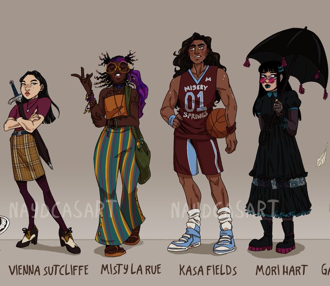Character lineup of a bunch of cryptid hunting teens from a pitch I'm working on 🌲