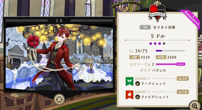 根性で、配布リドルくんの上限あげた。花婿スタイル可愛いんだもの‼️魔法もあげたよー🎵(レベルはあげられなかった…)結局指輪2000↑とれた…。始めたばかりにしては頑張ったのでは⁉️これもすべてフレンド様のおかげ…ありがたや。