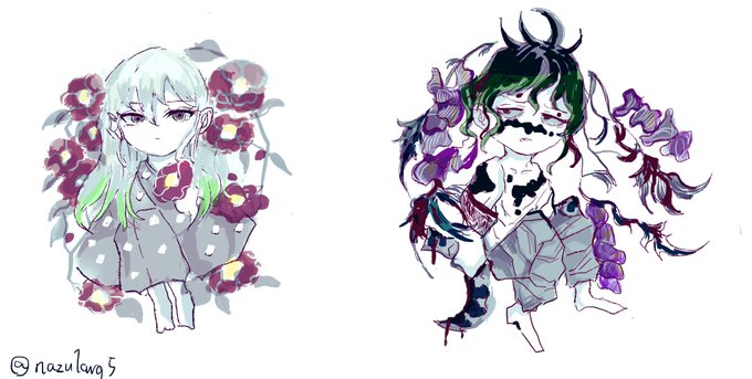 # リプきたキャラとお花を描く 第四弾描けたのでまとめてみました〜!! お付き合いありがとうございました😊 とっても楽しかったです✨