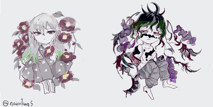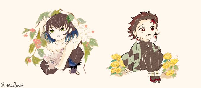 # リプきたキャラとお花を描くタグ 第3弾!梅ちゃんとぎゅう太郎 めちゃくちゃ楽しかったです アニメ楽しみ……