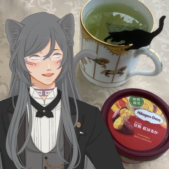 休憩〜🍵✨ この前行った「ネコ展」のミュージアムショップで購入した ねこ茶 とハーゲンダッツの新作 甘熟紅はるか🍠 両方ともめっちゃ美味し〜い🐈💕💕 #私のセイ #紳士のティータイム