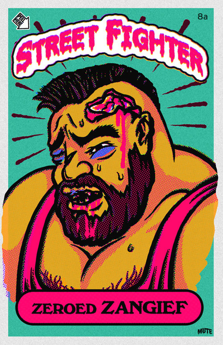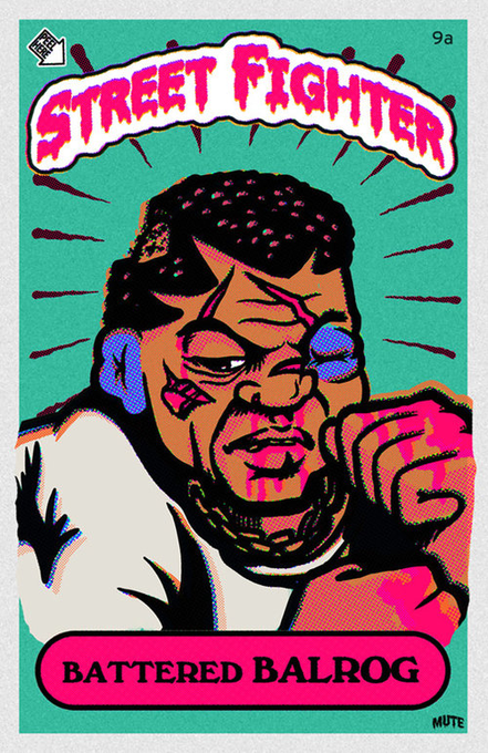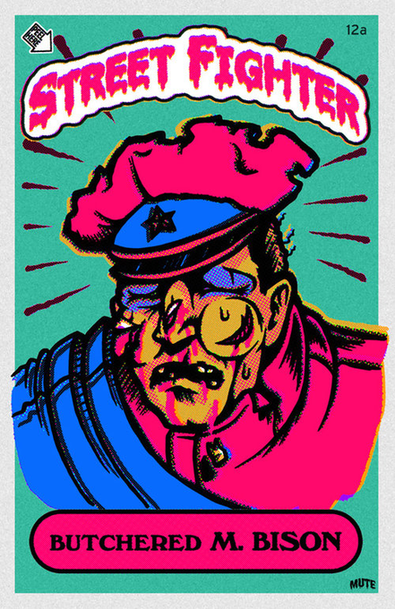 Street Fighter X Garbage Pail Kids artwork by @mutecult, ft. reimagined SFII lose portraits.