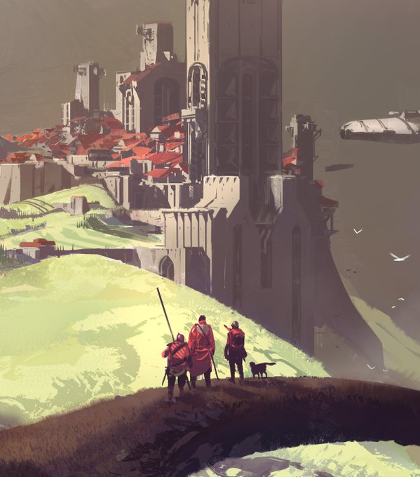 @PonPon38715521 book cover for a Jack Vance novel. French edition. done last year. it is part of a 4 cover panel for 4 different book with one single interconnected illustration.