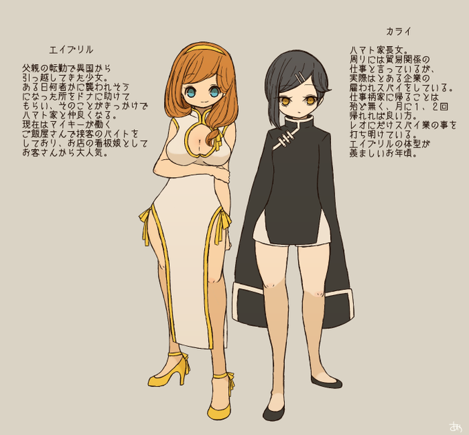 https://t.co/3rHsrLqArZ ←2年前に描いたえせちゃいなシリーズの設定資料を今更だけどまとめて描いてみました( ¨̮ )