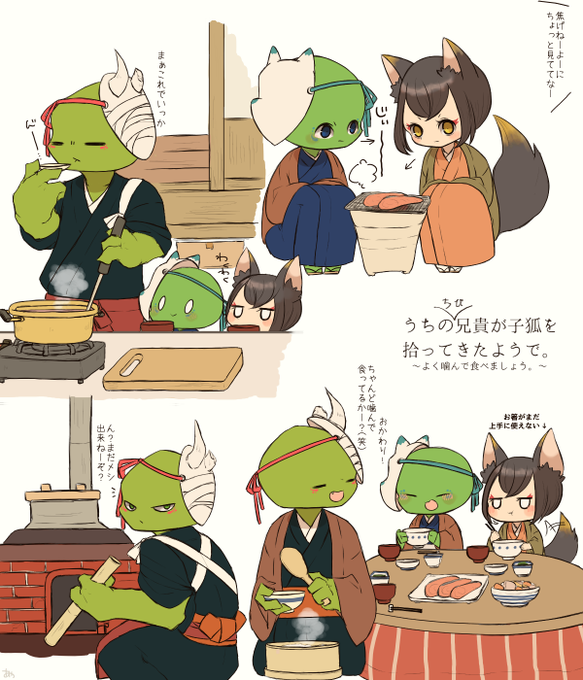 https://t.co/92hAmN4qZq ふとこの和風パロ思い出したのでおまとめらくがきを。れおちゃんが子狐からいちゃんを家に連れてきたときのらくがき。