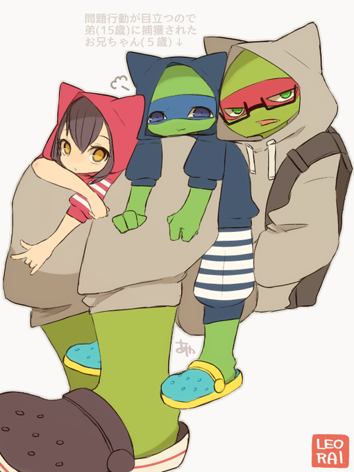 @ne5_A2 ↑そういう感じ+和風とラファ追加したらくがき(◍•ᴗ•◍) ちっちゃくてもお兄ちゃんしてるレオちゃんが描きたかった✌