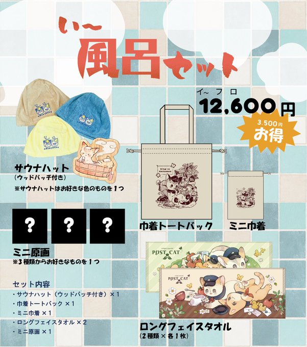 【デザフェスのお知らせ】 ✨️会場限定✨️ 《 い~お風呂セット 》 ・販売数 3セット ミニ原画もついてるとてもお得なセットになってます! 原画は会場でのお楽しみ! 早い者勝ちで好きなの選んでください☺️ 📮11/11.sat B-79 西館1Fでまってます!🐱 #デザフェス58 #ポスト猫