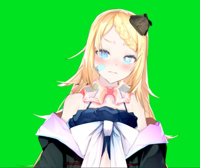 立ち絵どっちが良いでしょう。左の帽子は写真の色味がそのままですが、3D感が強すぎて……色味を調整したのが右です。むむむ。