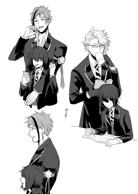ジェイ監🐬🌸と🐱 自分の左側に🌸がいるとメッシュでよく見えないから耳にかける🐬はいる #twstプラス