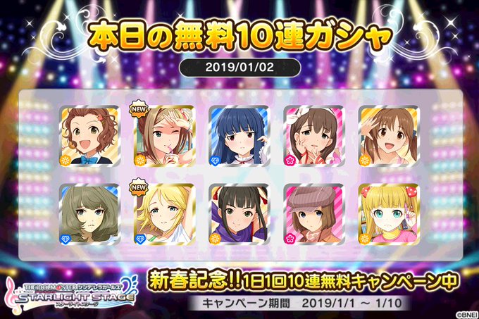 デレステでプラチナオーディションガシャ1日1回10連無料キャンペーン中!! ねっこさんの本日の結果はこちら!! #デレステ #デレステ10連ガシャ無料 #2019年もレッツ・デレステ