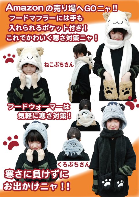 昨年好評のフードマフラーの新作が発売中ニャ😻今年はネックウォーマーもできたニャ😻https://t.co/UNu465yzK8 Amazonの売場にレッツGOニャ~🐱😺🐱 #Amazon #アマゾン