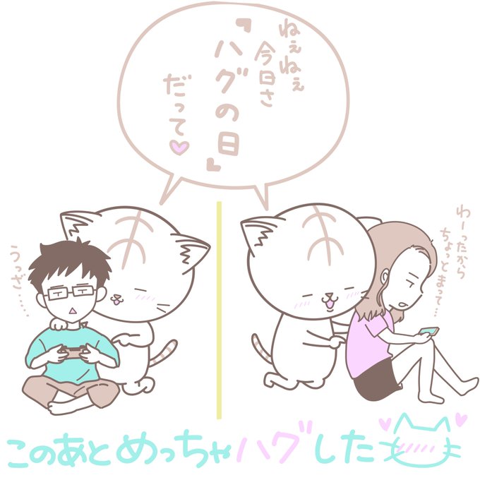 思春期だし反抗期な子供たち。#イラスト #お絵描き好きさんと繋がりたい #ねこ #思春期 #反抗期 #こども #ハグの日